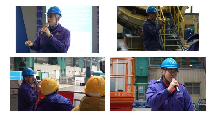現(xiàn)場(chǎng)參觀時(shí),丁道復(fù)介紹了公司歷史和典型產(chǎn)品,生產(chǎn)制造部團(tuán)總支第一支部書(shū)記高靖博介紹了焊接設(shè)備和焊接后的檢驗(yàn)處理工作,生產(chǎn)制造部團(tuán)總支機(jī)加團(tuán)支部書(shū)記劉方舟介紹了機(jī)加設(shè)備和加工產(chǎn)品,項(xiàng)目聯(lián)合團(tuán)支部書(shū)記韓兆明介紹了三門(mén)4號(hào)蒸汽發(fā)生器的特點(diǎn)和功能。