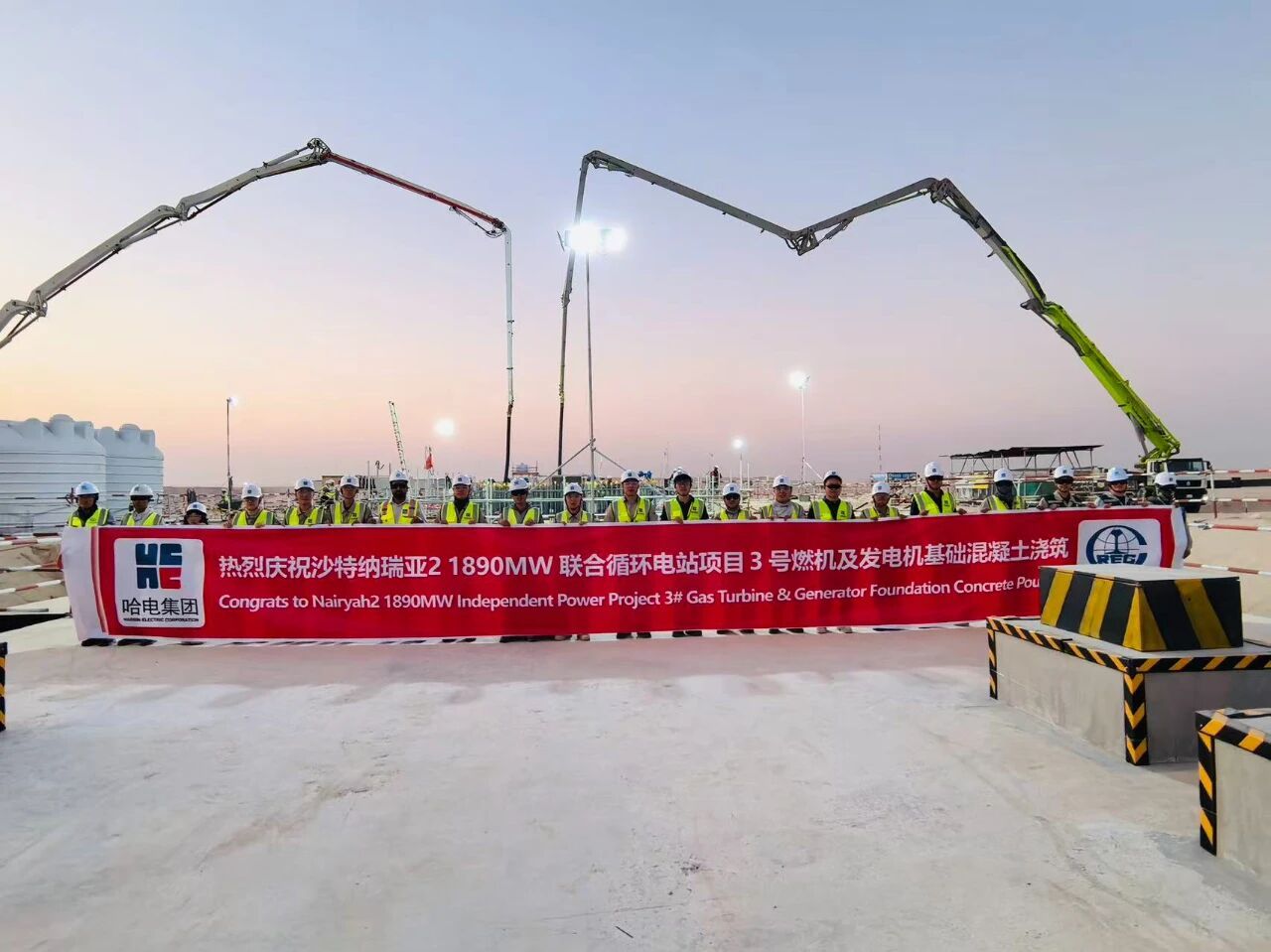 在舉國歡慶中秋佳節(jié)之際,哈電國際沙特納瑞亞2項(xiàng)目現(xiàn)場(chǎng)再傳捷報(bào)。繼10月2日順利完成2號(hào)燃機(jī)及發(fā)電機(jī)基礎(chǔ)混凝土澆筑后,經(jīng)過數(shù)日奮戰(zhàn),10月7日又成功完成3號(hào)燃機(jī)及發(fā)電機(jī)基礎(chǔ)混凝土澆筑工作,以實(shí)干獻(xiàn)禮中秋佳節(jié)。